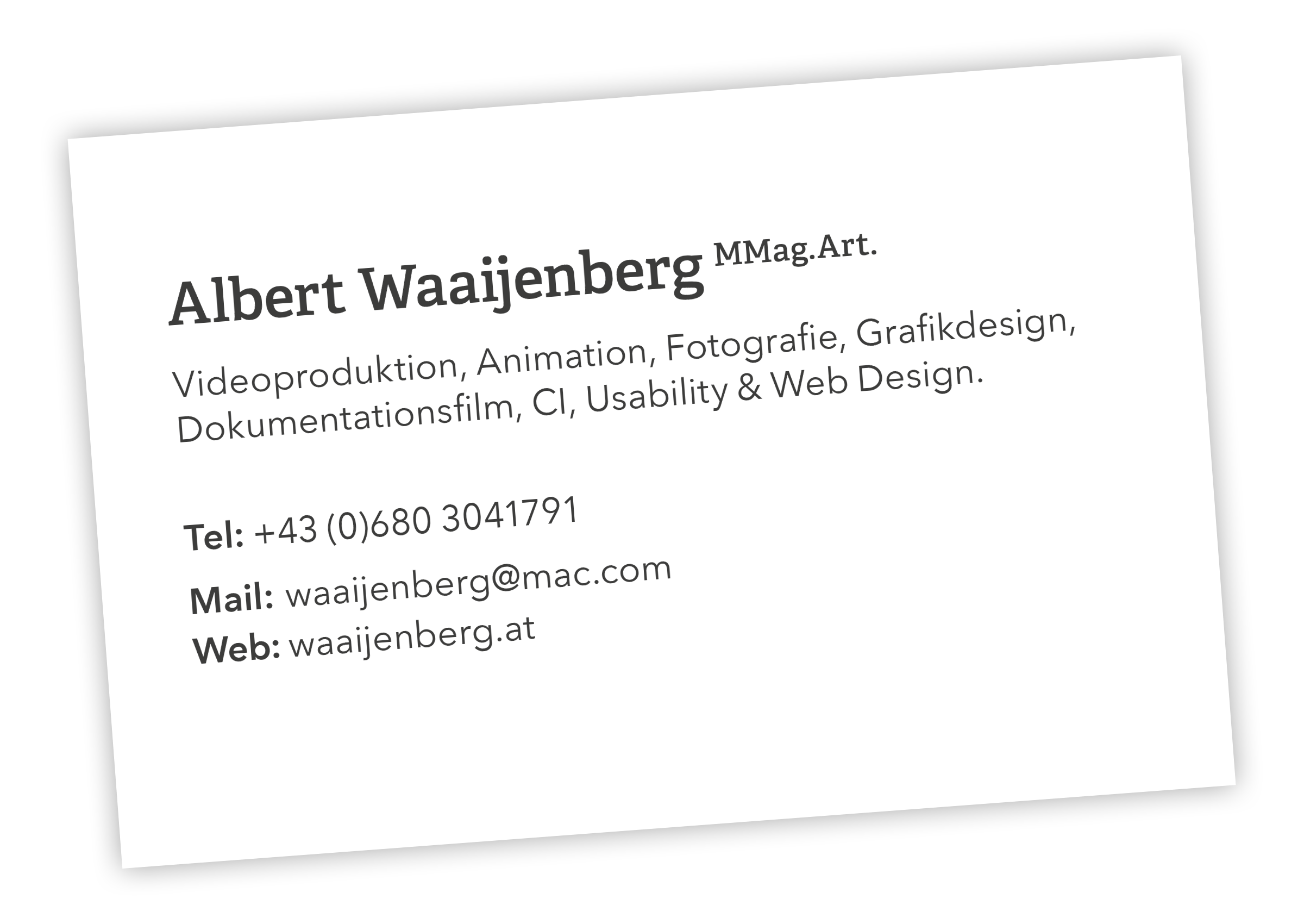 Arbeiten von Albert Waaijenberg der letzten Jahre. Mehr als 200 Videos, unendlich viele Fotos und auch einige Designarbeiten sind seit 2004 entstanden. Die Arbeiten beim Fonds Soziales Wien (2014-2024) können aus Datenschutz-Gründen (Klienten und Mitarbeiter:innen) hier nicht gezeigt werden.
